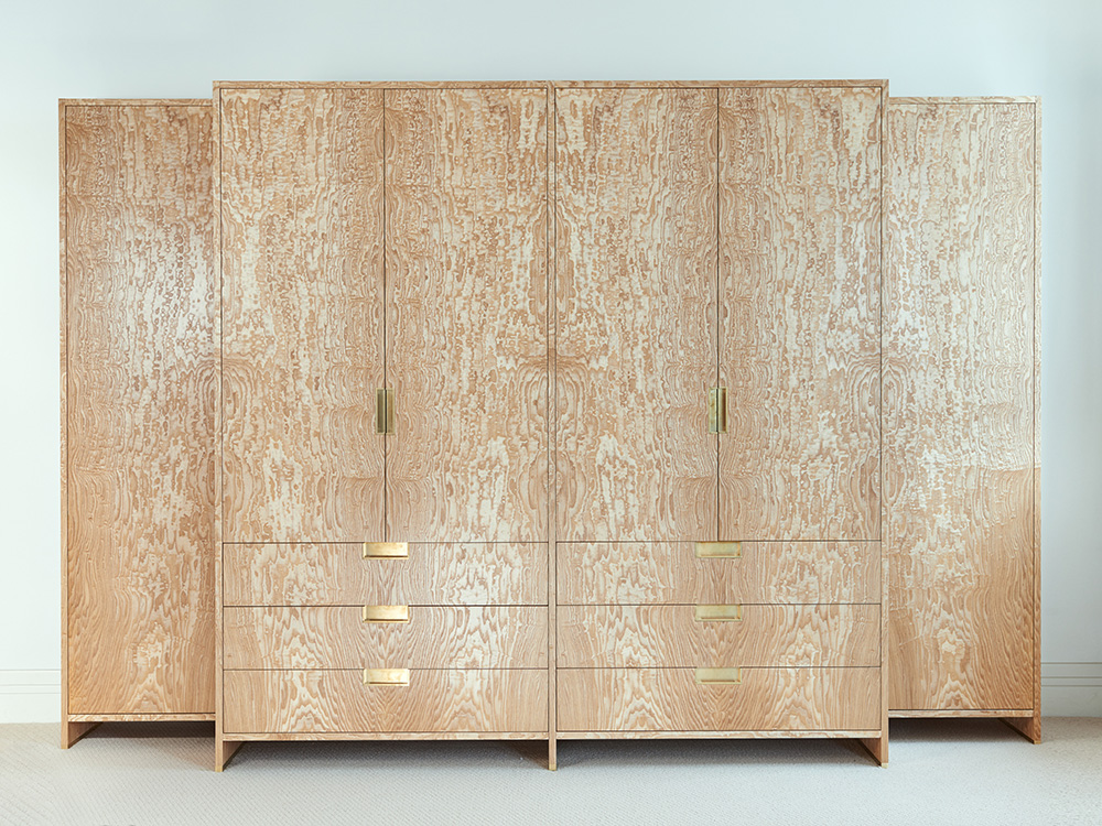 solid walnut fins, laminated and cut and then oiled to seal. LED lighting.